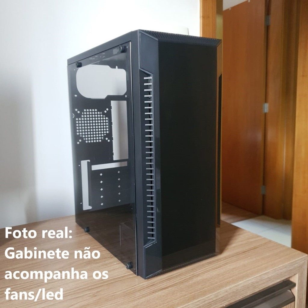 Gabinete Gamer Frontal de Acrílico e Lateral de Vidro USB, Áudio Com Garantia * Comprando até as 09h enviamos no mesmo dia!! * Especificações Marca: Brazil PC Posição da fonte de alimentação: Parte superior USB I/O: USB + AUDIO; HDD / SSD:2 * HDD + 2 * SDD Suporte para placa-mãe: ATX / Micro-ATX Material e espessura: 0,40 mm SPCC Tamanho sem painel frontal (C * L * A): 325X175X408mm Tamanho com painel frontal (C * L * A): 365X175X410mm Tamanho da embalagem (C * L * A) 410X207X460mm Peso líquido: 3,0 kg Peso bruto: 3,6 kg Slots PCI: 6 Comprimento max. da GPU: 30cm Altura max. da CPU: 145 mm Atenção: Gabinete não suporta Water Cooler. Suporte de fans: - Painel frontal: 3 * 120 mm (não incluso) - Chapa do painel frontal: 1 * 120mm (não incluso) - Painel traseiro: 1 * 80mm (não incluso)